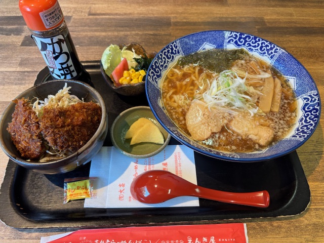 喜多方ラーメンは醤油ベースであっさりとおいしくソースカツ丼はガツンとボリュームがあって最高なランチになりました。
