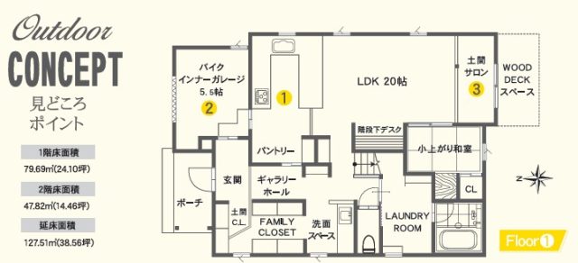 キッチン以外にもバイクガレージや土間サロンなど見所いっぱいです。