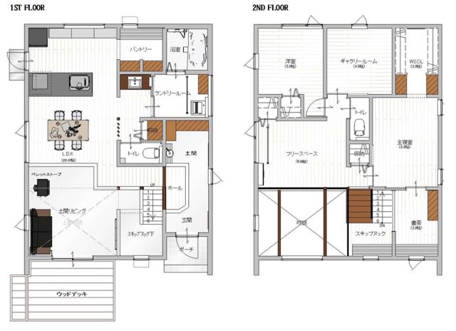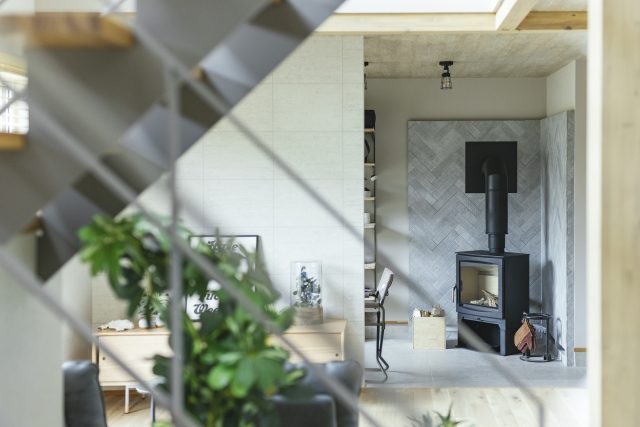 土間リビングには、ペレットストーブを配置。